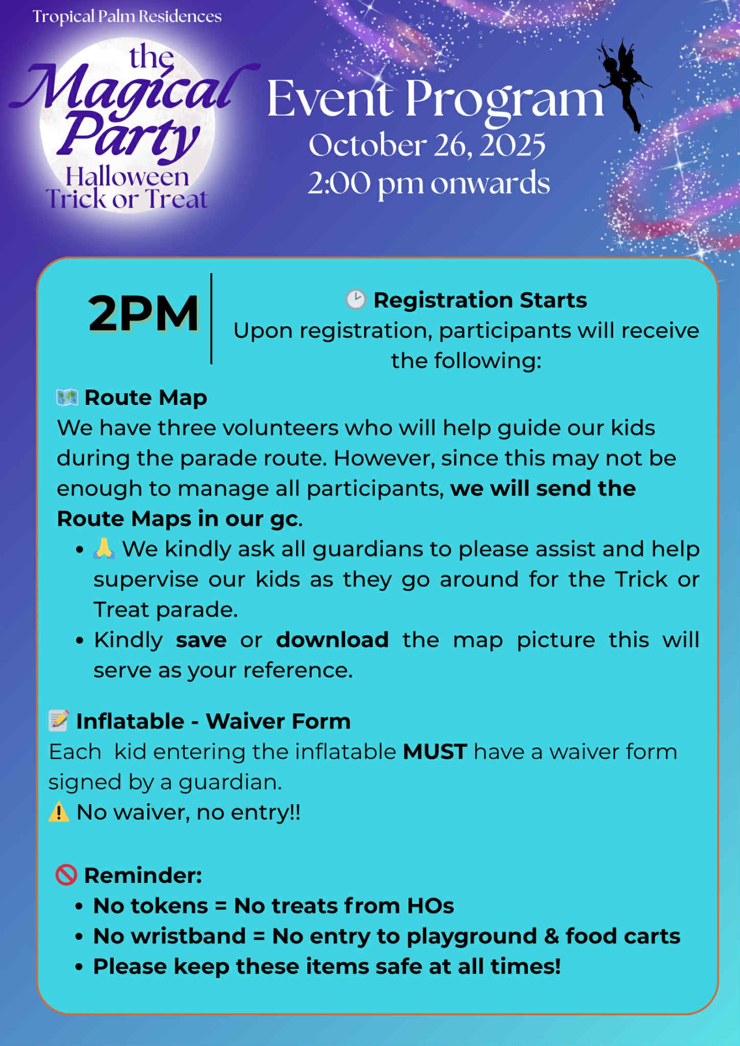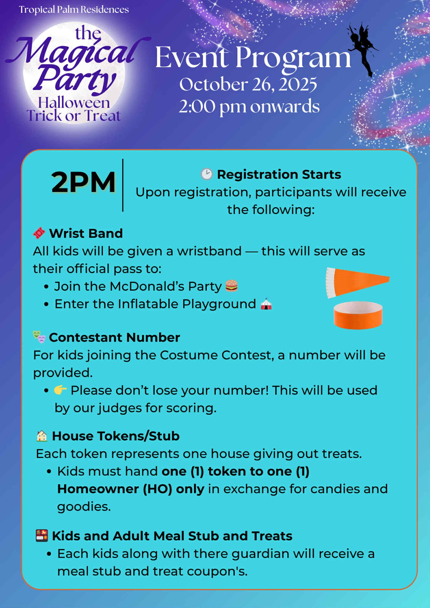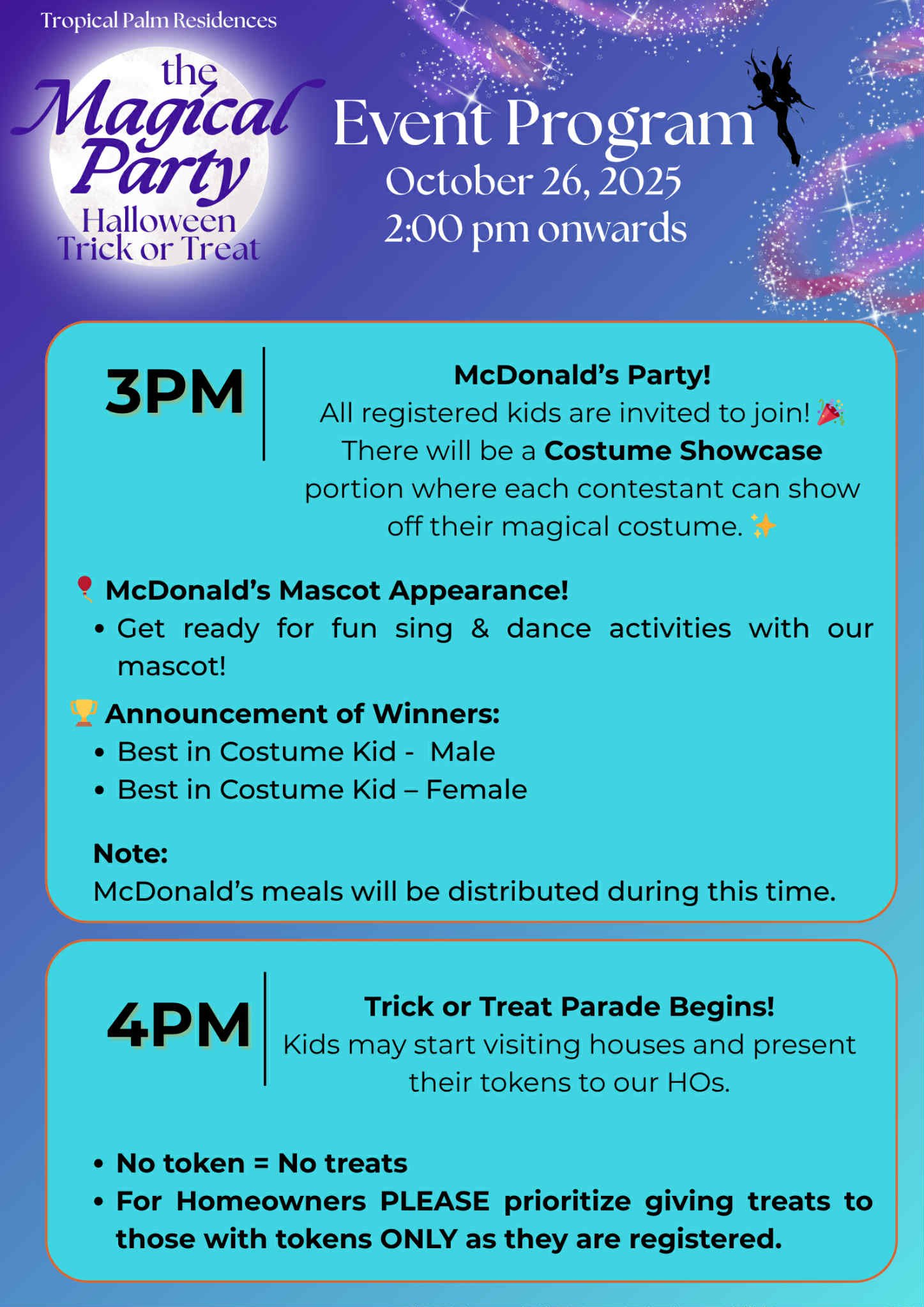 The much-awaited Tropical Palm Residences Trick or Treat Event is finally happening tomorrow, October 26, 2025! Our community is all set to transform into a magical Halloween wonderland filled with laughter, candies, and creative costumes. Whether you’re a little ghost, a friendly witch, or a superhero for the day, it’s going to be an unforgettable celebration of fun and community spirit.